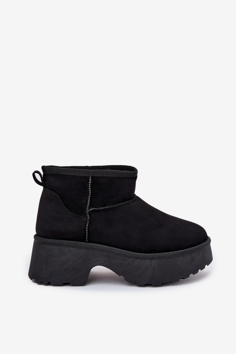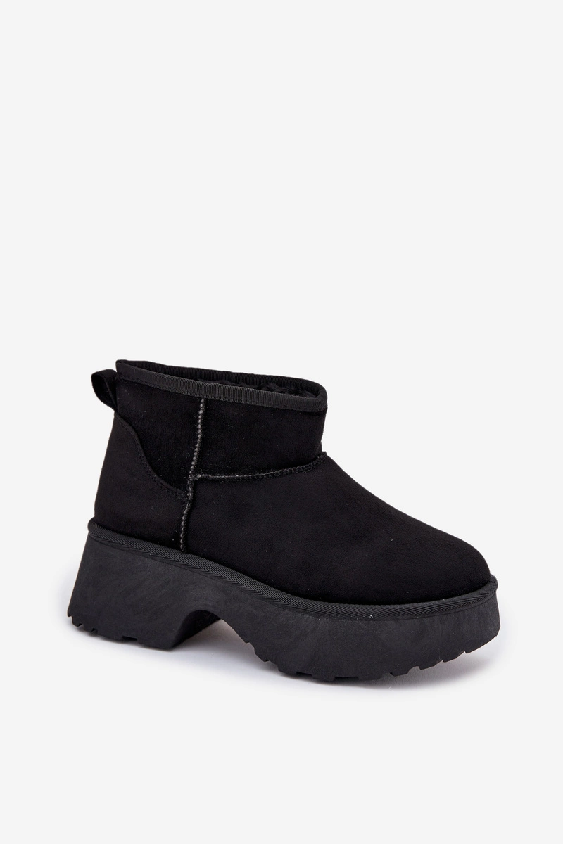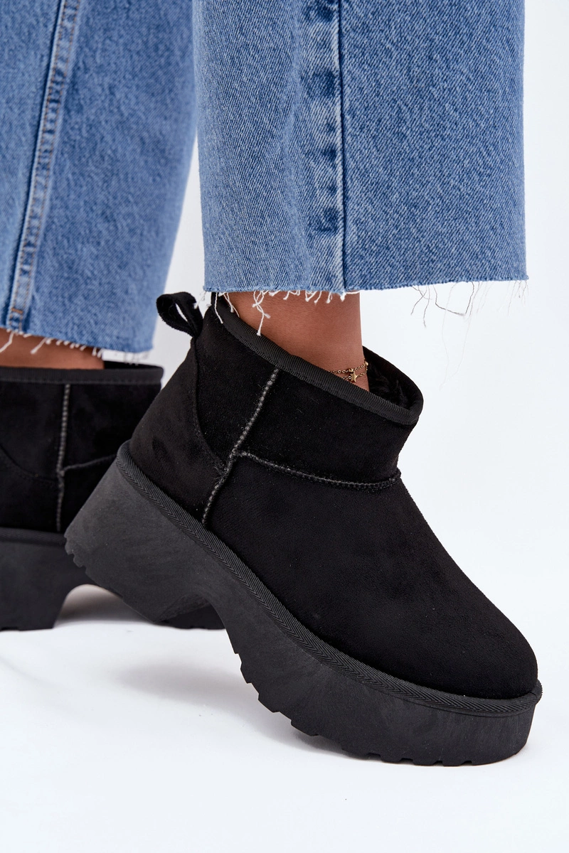 Śniegowce Damskie Niskie Wsuwane Ocieplane Futerkiem Czarne Mavelle