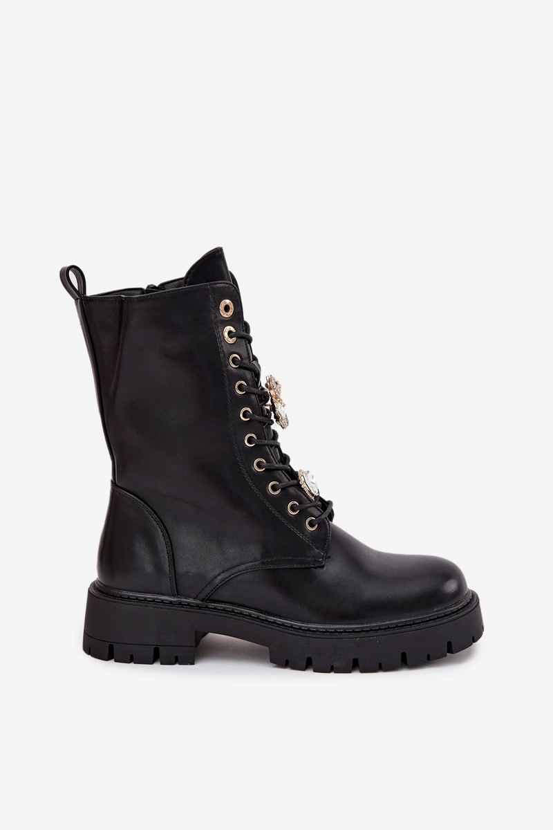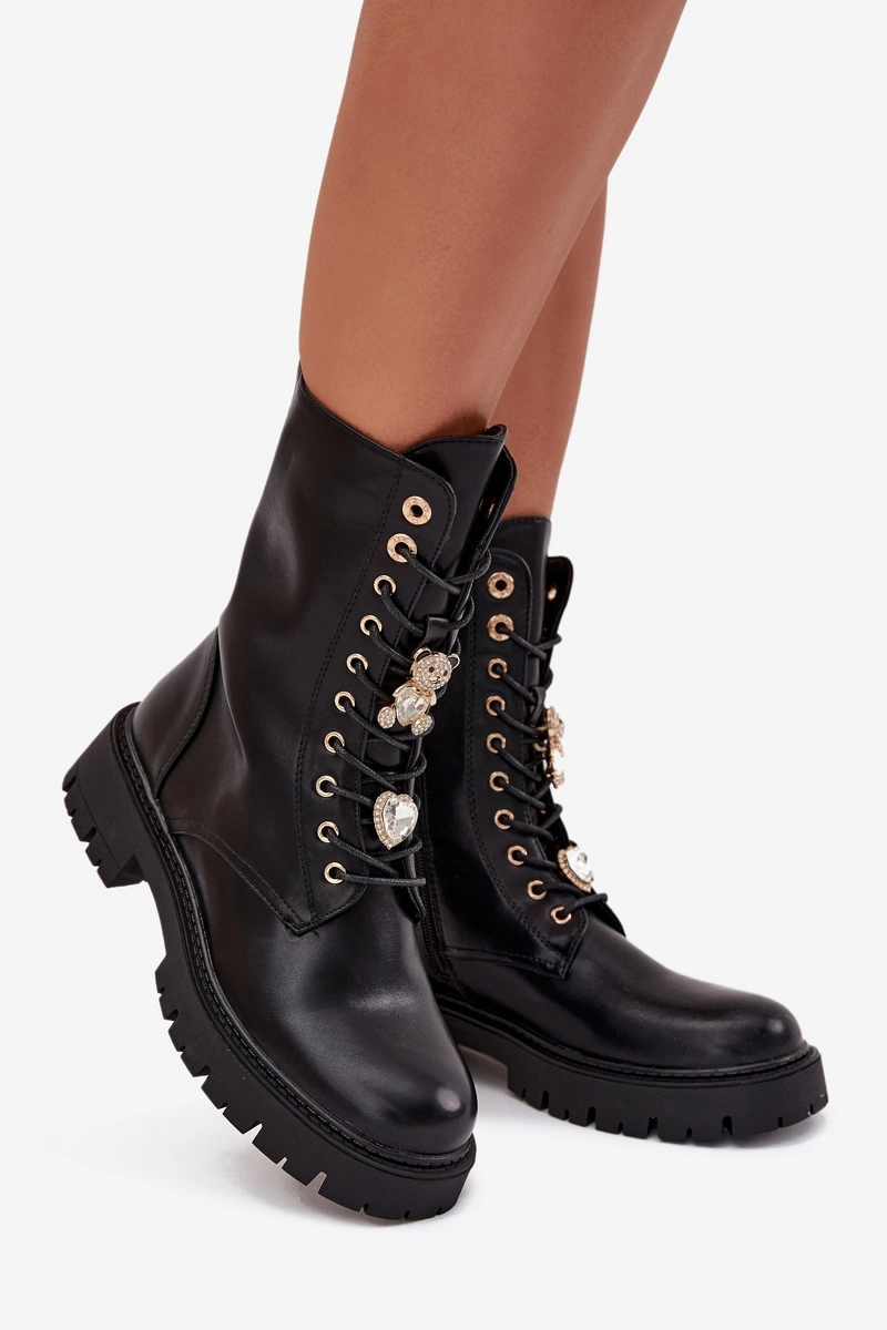 Botki Workery Damskie Z Przypinkami Ocieplane Czarne Lomina