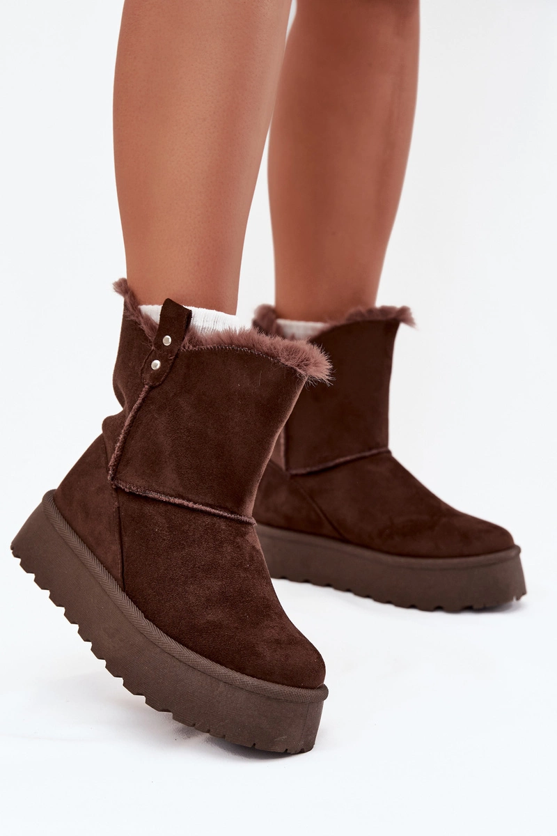 Damskie Śniegowce Na Platformie Z Futerkiem Czekoladowe Evelira