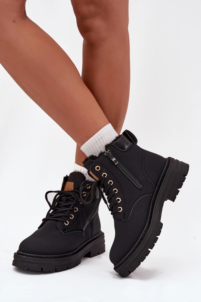 Trapery Damskie Ocieplane Futerkiem Na Zamek Czarne Tharika