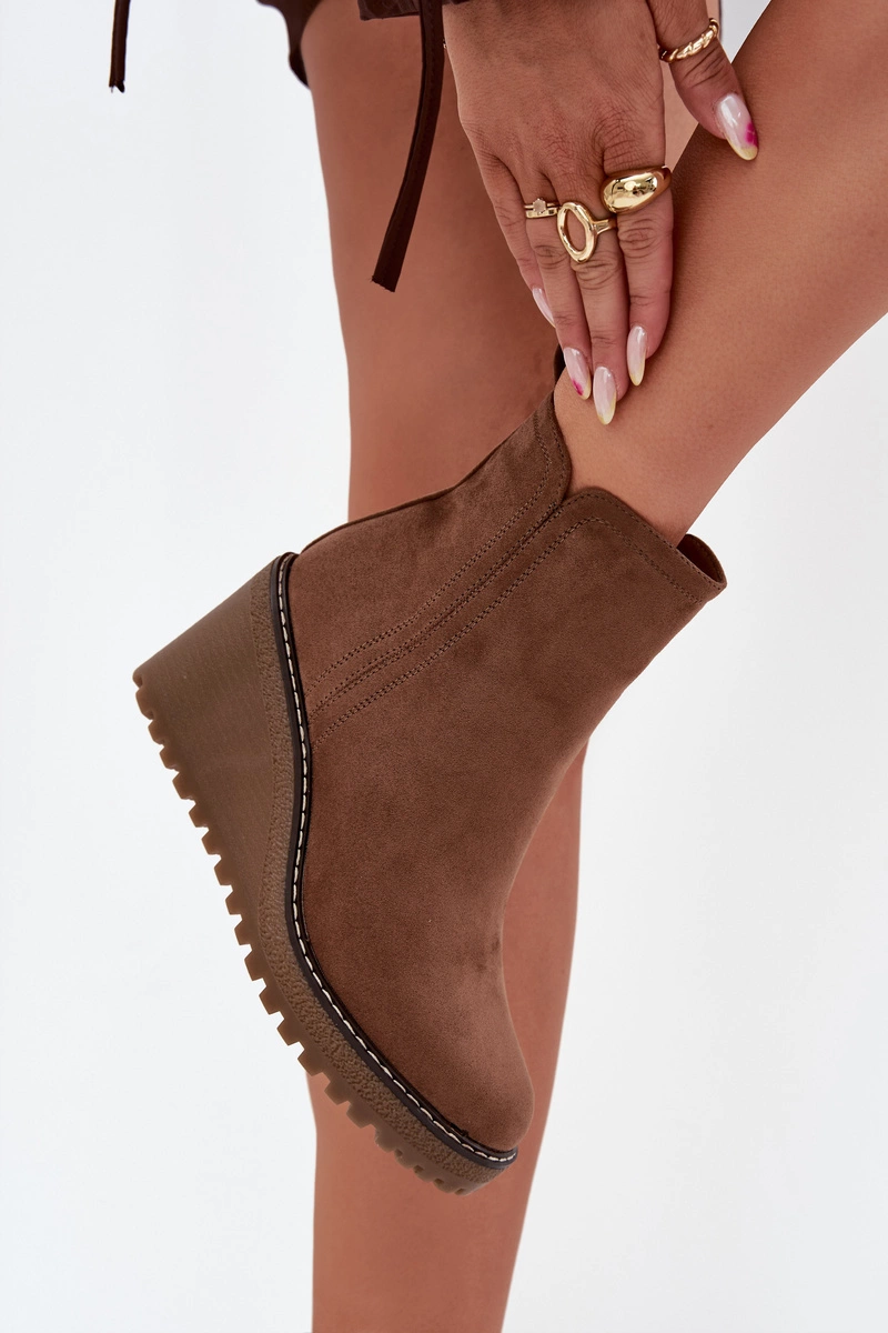 Ocieplane Botki Na Koturnie Z Eko Zamszu Brązowe Mavona