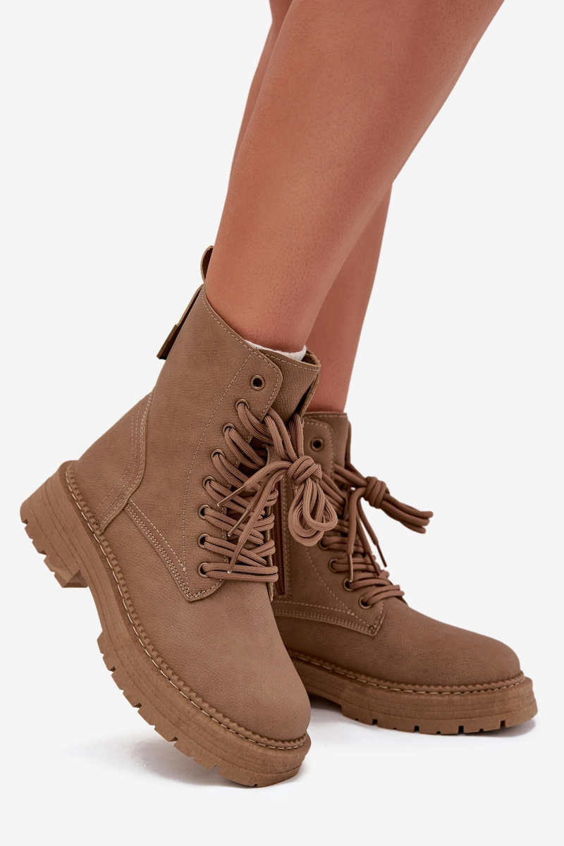 Damskie Botki Workery Na Zamek Ciemnobeżowe Tirina