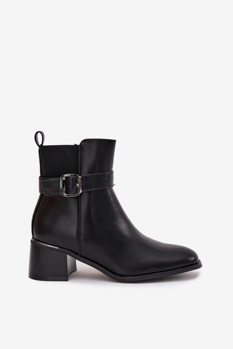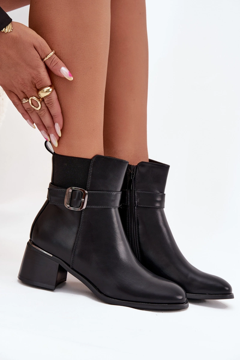 Ocieplane Botki Damskie Na Obcasie Z Paskiem I Klamrą Czarne Sylira