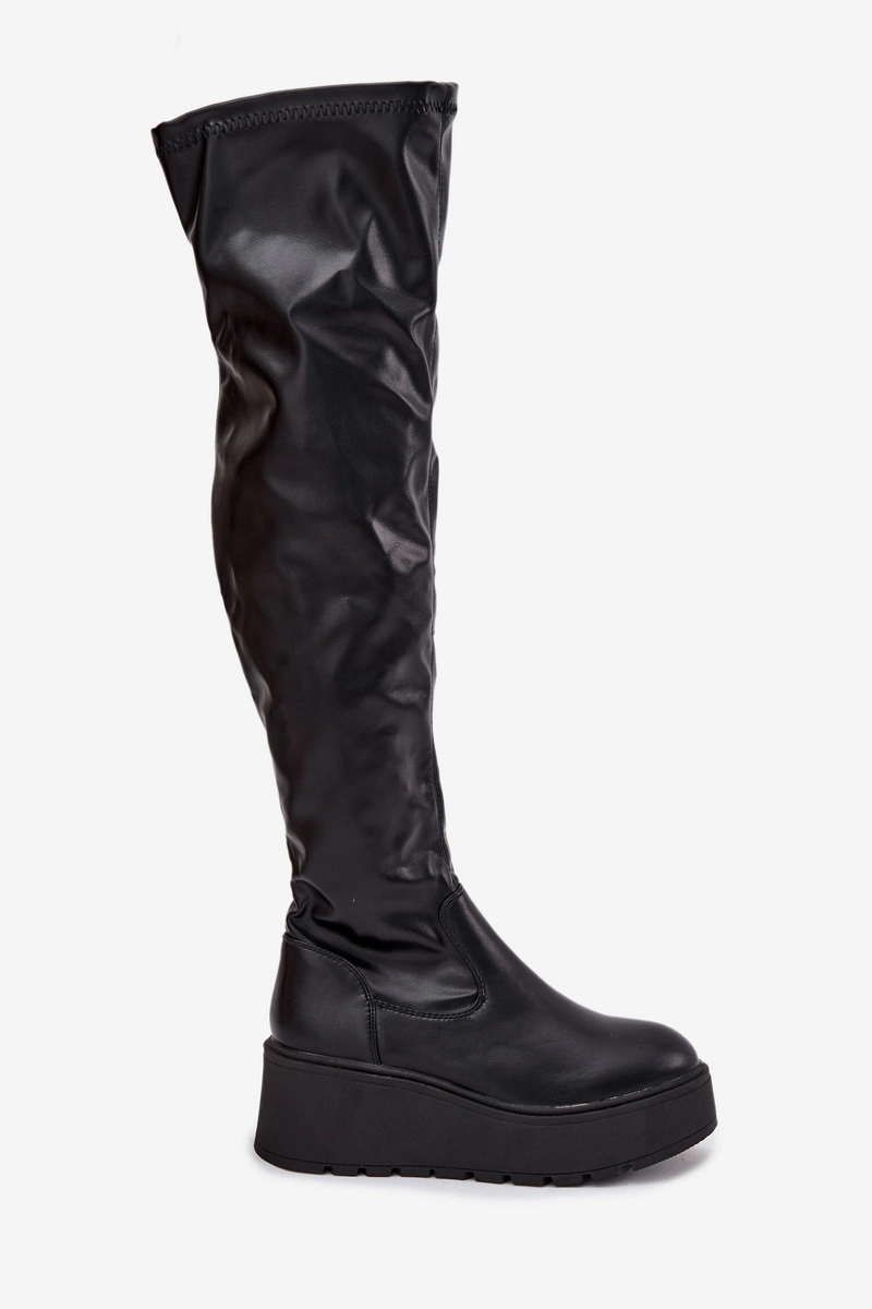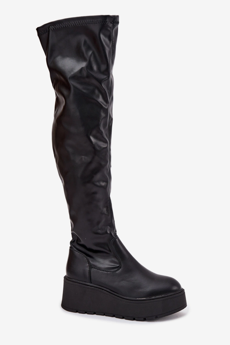 Kozaki Damskie Za Kolano Na Platformie I Delikatnym Koturnie Czarne Lydira