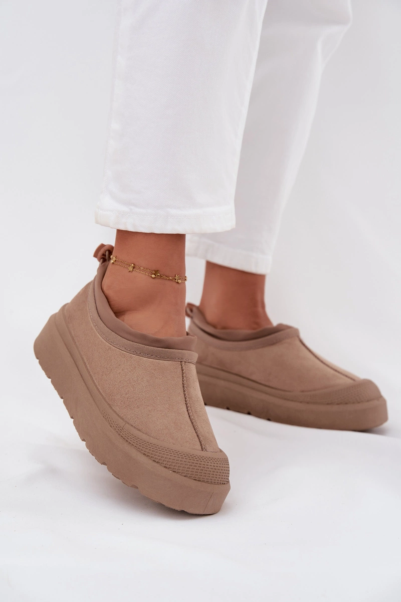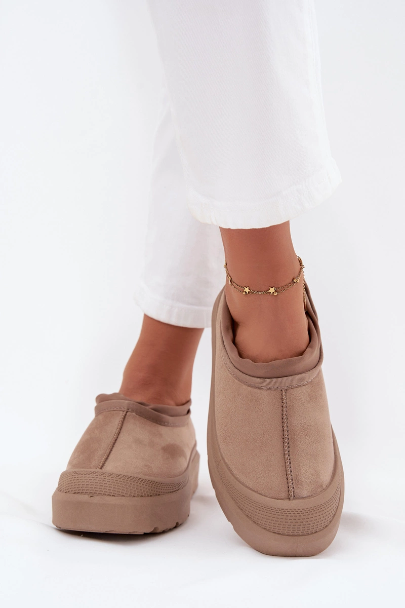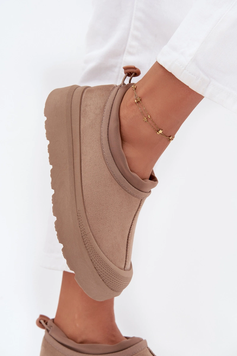 Śniegowce Damskie Na Platformie Z Niską Cholewką Ciemnobeżowe Izamine