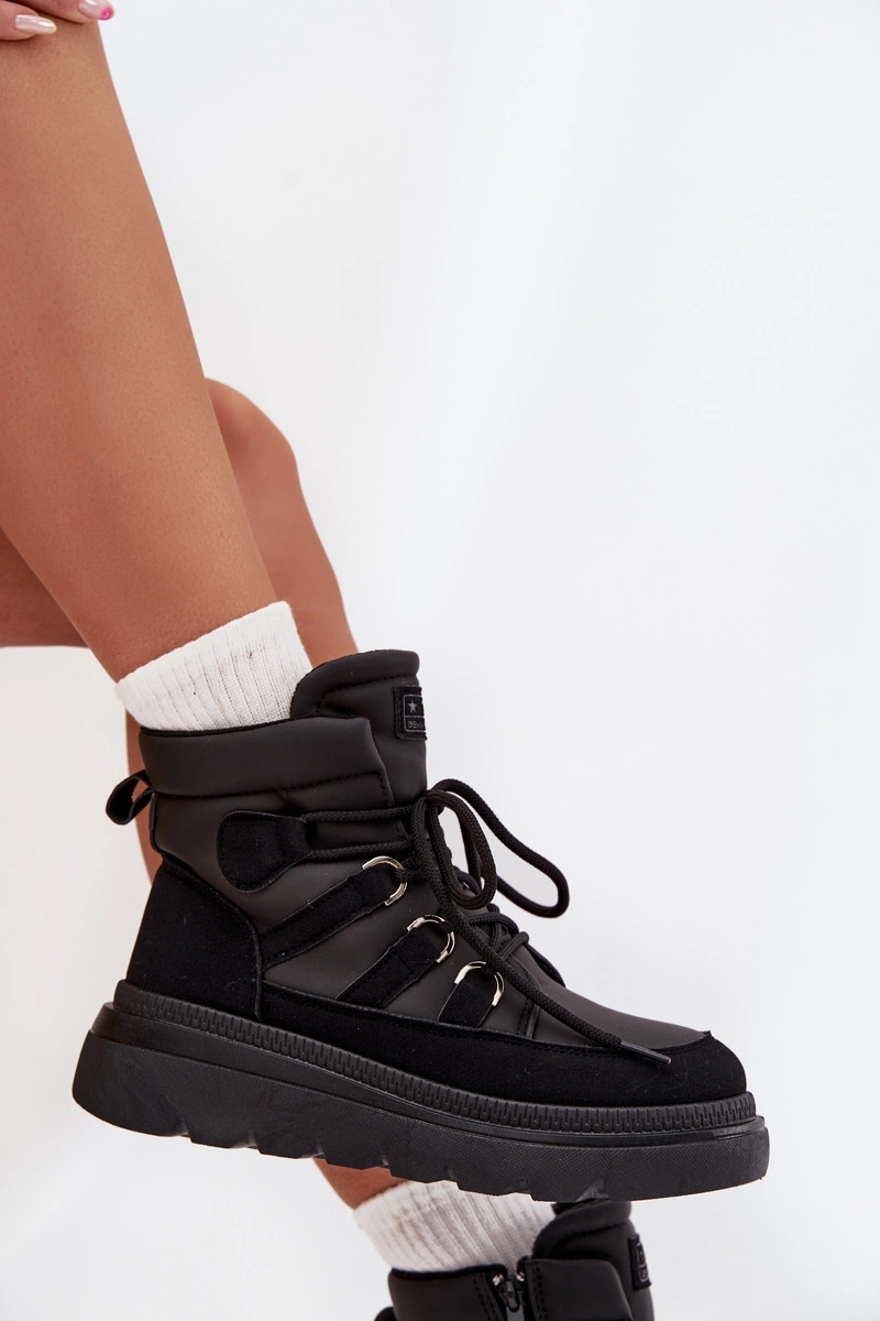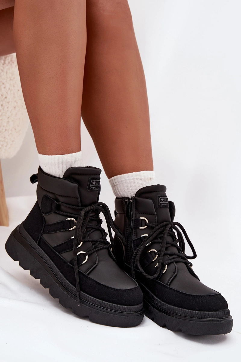 Botki damskie ocieplane to doskonały wybór na zimowe dni. Osadzone na platformie, zapewniają komfort i stabilność podczas chodzenia. Model ten wyposażony jest w sznurowanie oraz dodatkowe zapięcie na zamek, co ułatwia zakładanie i dopasowanie do stopy. Ocieplenie wewnątrz buta gwarantuje ciepło nawet w mroźne dni. Stylowy fason sprawia, że te botki będą świetnym uzupełnieniem każdej zimowej stylizacji. Przy wyborze rozmiaru prosimy sugerować się tabelą rozmiarów.