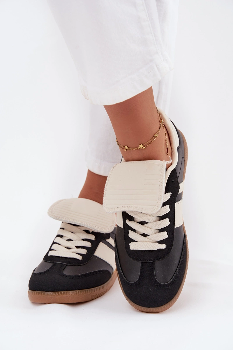 Damskie sneakersy wykonane z eko skóry. Charakteryzują się unikalnym, wywiniętym językiem, który nadaje im nowoczesny wygląd. Oferują komfort dzięki miękkiej wkładce z piankowego tworzywa, która zapewnia doskonałą amortyzację i wygodę przez cały dzień. Sznurowane, co pozwala na idealne dopasowanie do stopy. Te sneakersy to świetny wybór na co dzień. Przy wyborze rozmiaru prosimy kierować tabelą rozmiarów.