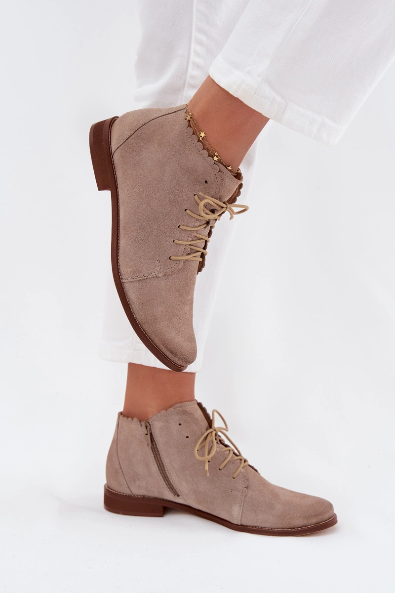 Zamszowe Botki Na Płaskim Obcasie Cappuccino Zazoo 4078