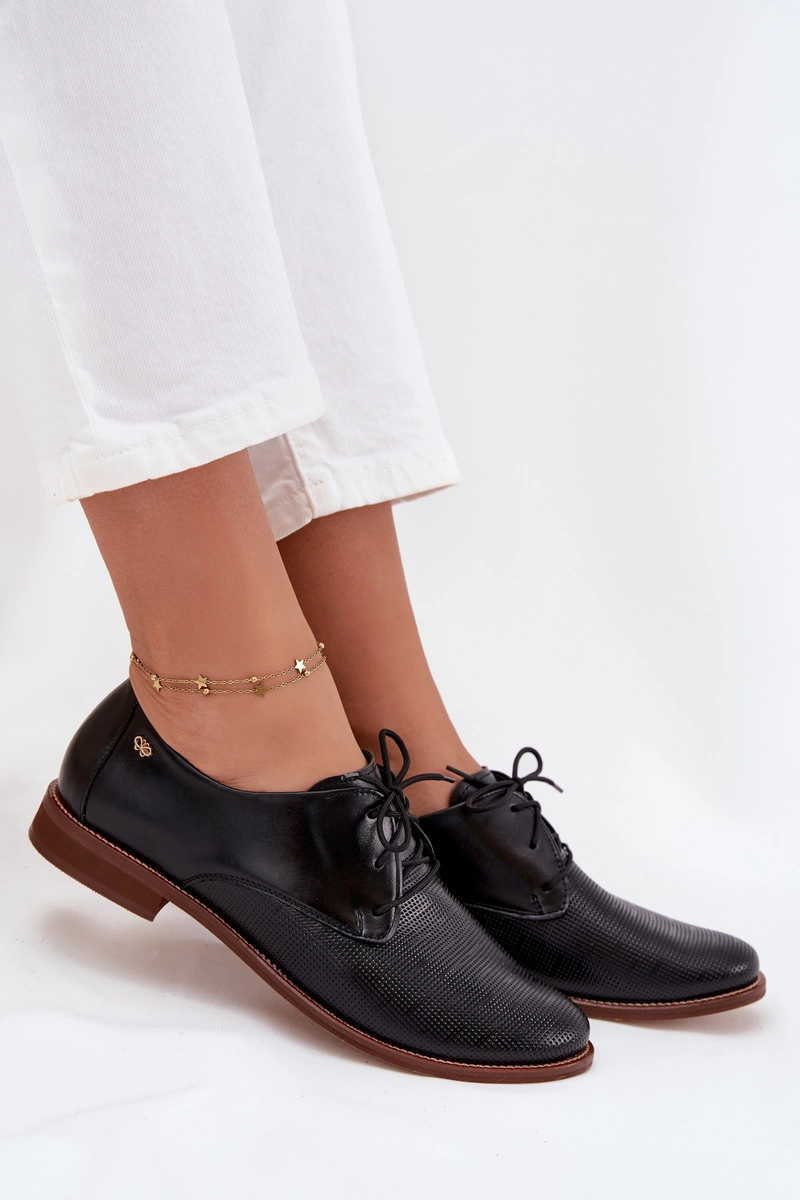 Skórzane Półbuty Damskie Eleganckie Sznurowane Zazoo 4238 Czarne