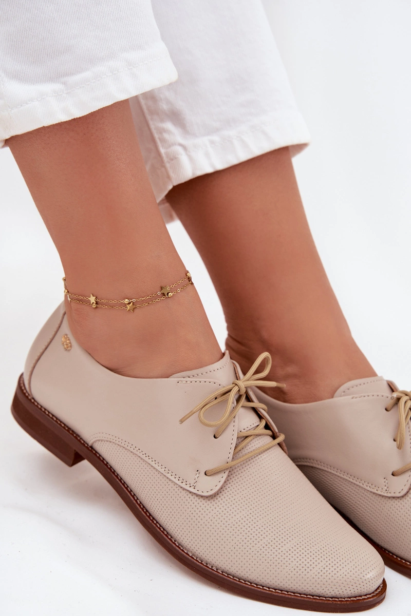 Skórzane Półbuty Damskie Eleganckie Sznurowane Zazoo 4238 Beżowe