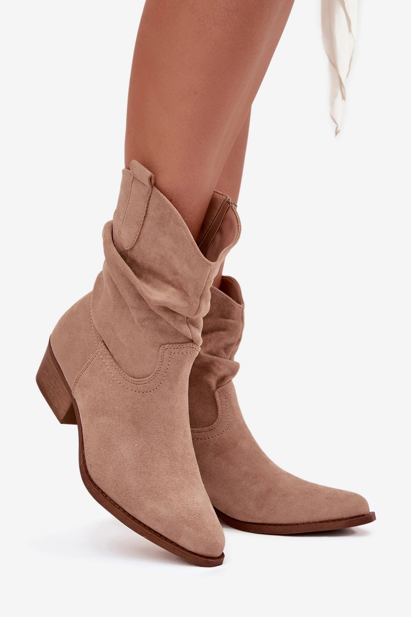 Botki Damskie Na Niskim Obcasie Z Marszczeniem Beżowe Adena