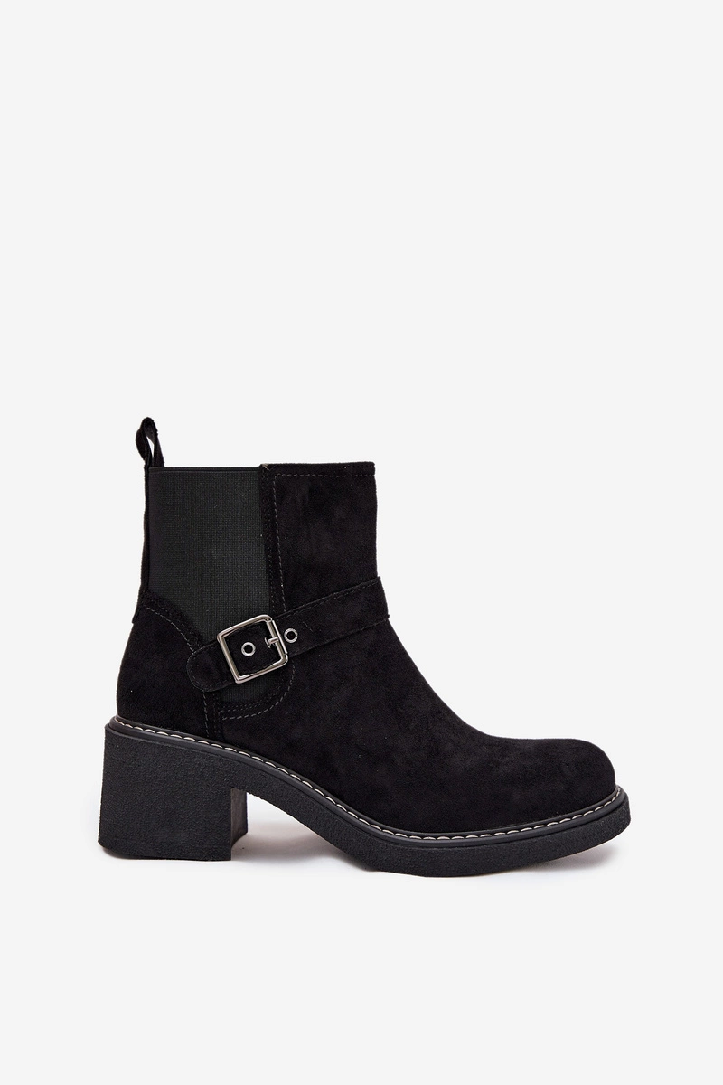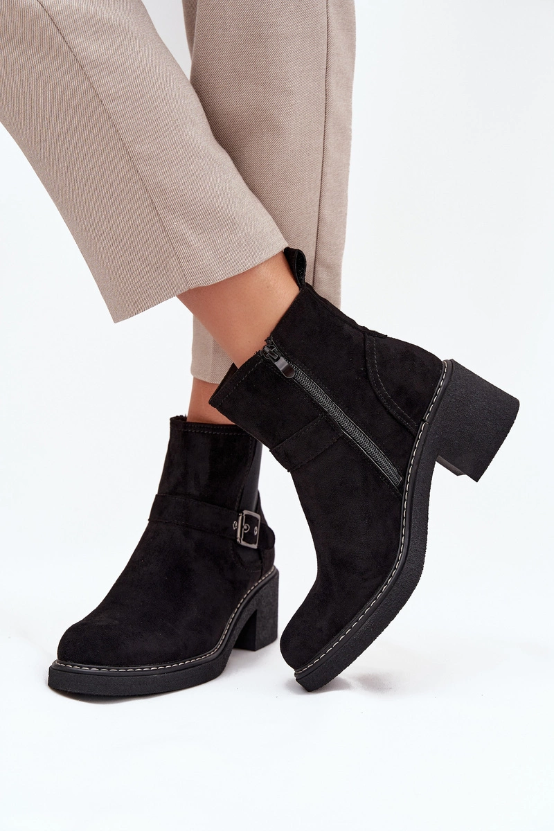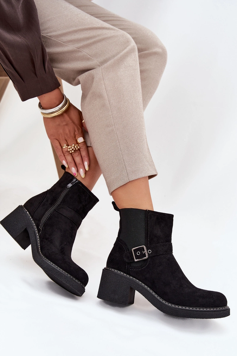 Botki Damskie Na Klocku Z Klamrą Czarne Nymera
