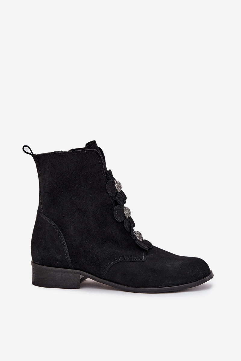 Zamszowe Botki Damskie Z Ozdobnymi Kwiatkami Zazoo 3085 Czarne