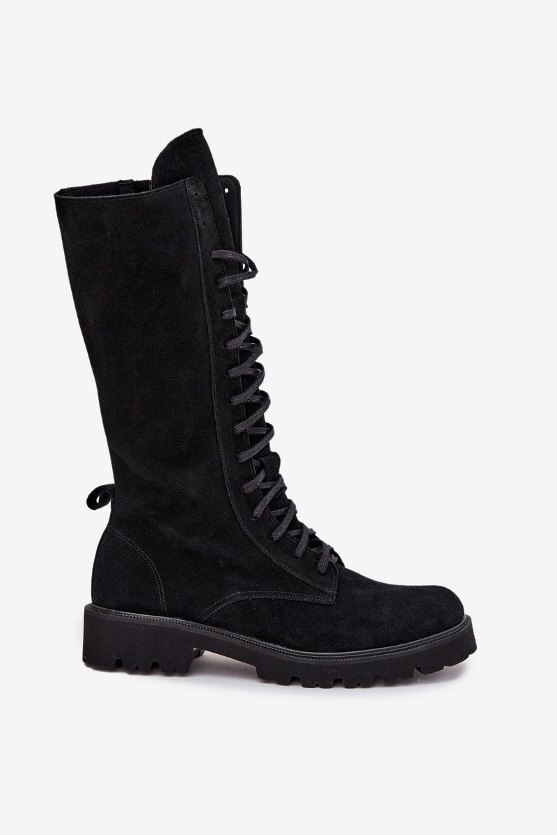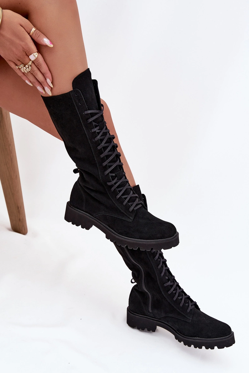 Zamszowe Botki Ze Sznurowaniem Do Połowy Łydki Zazoo 3103 Czarne
