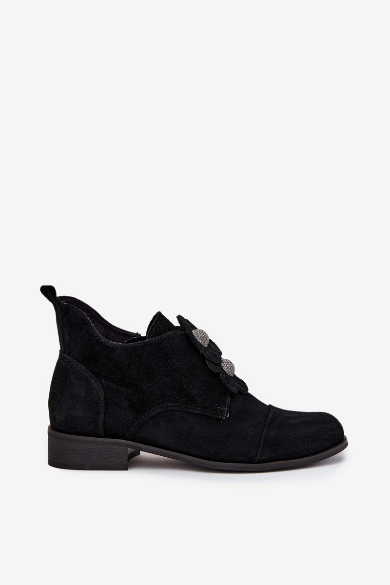 Zamszowe Półbuty Damskie Z Ozdobnymi Kwiatkami Zazoo 3080 Czarne