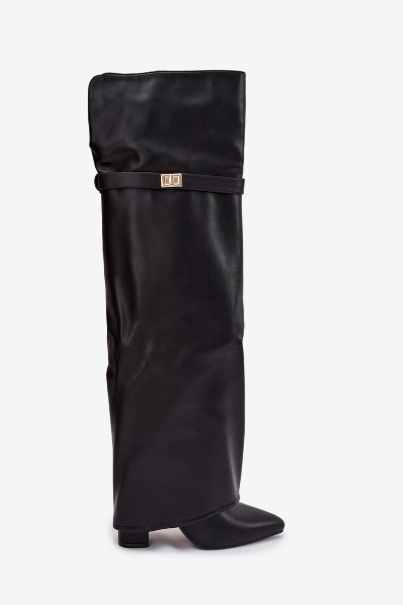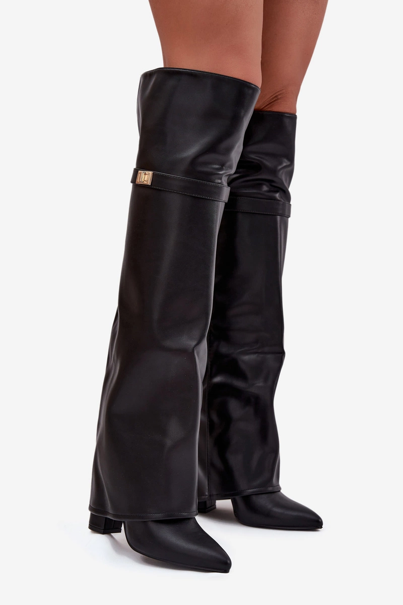 Ocieplane Kozaki Z Wywiniętą Cholewką Za Kolano Obcas Słupek Czarne Serelle