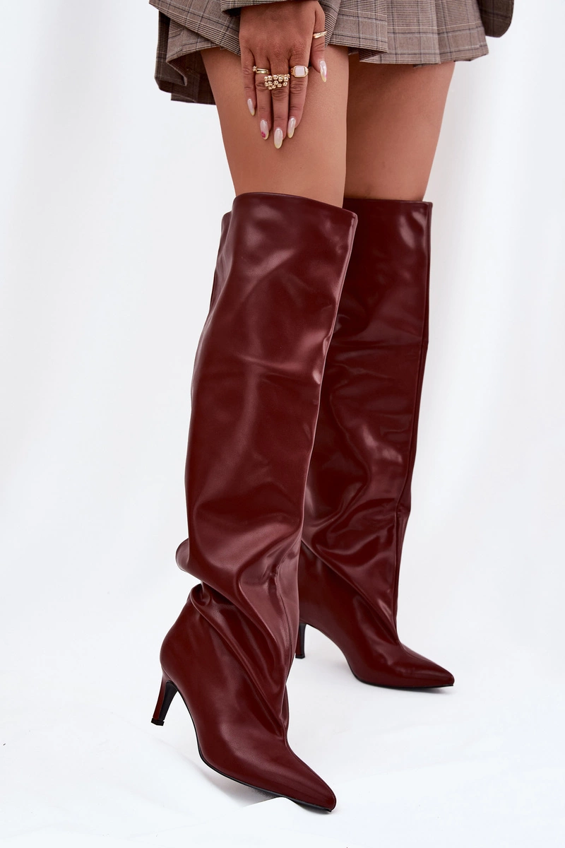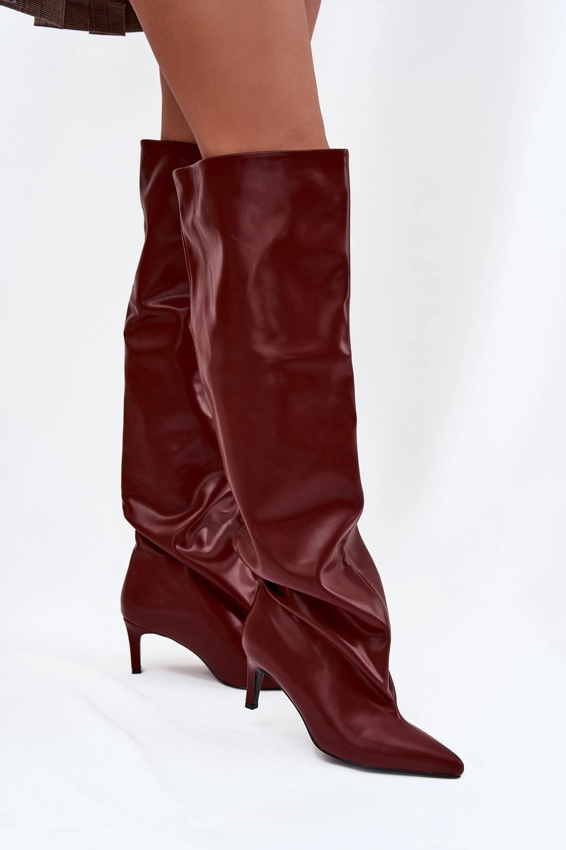 Kozaki Damskie Na Szpilce Wsuwane Bordowe Mavilla