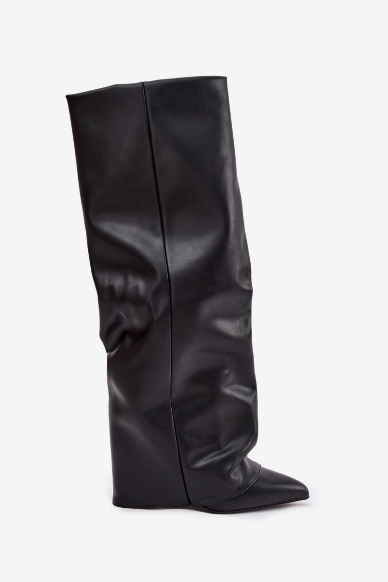 Ocieplane Kozaki Damskie Z Wywiniętą Cholewką Na Słupku Czarne Elivira