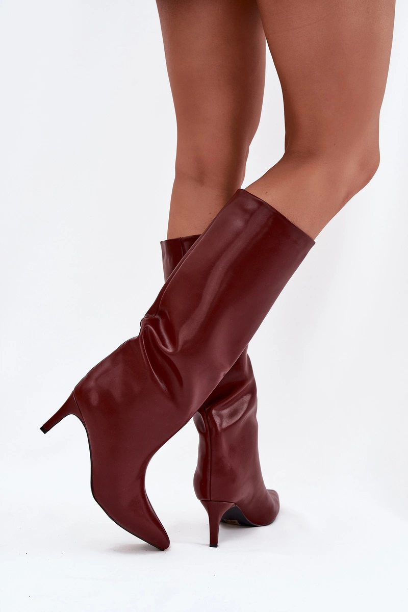 Kozaki Damskie Wsuwane Ocieplane Na Szpilce Bordowe Olivienne