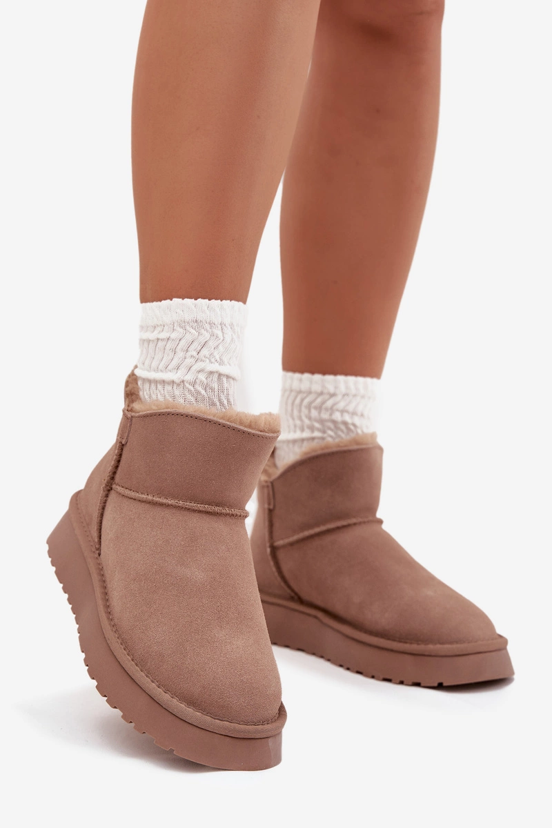 Śniegowce Z Naturalnego Zamszu Ocieplane Futerkiem Vinceza 97961 Beżowe