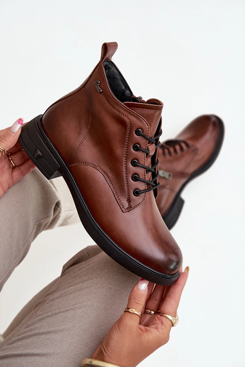 Ocieplane Skórzane Botki Damskie Na Niskim Obcasie Vinceza 39953 Brązowe