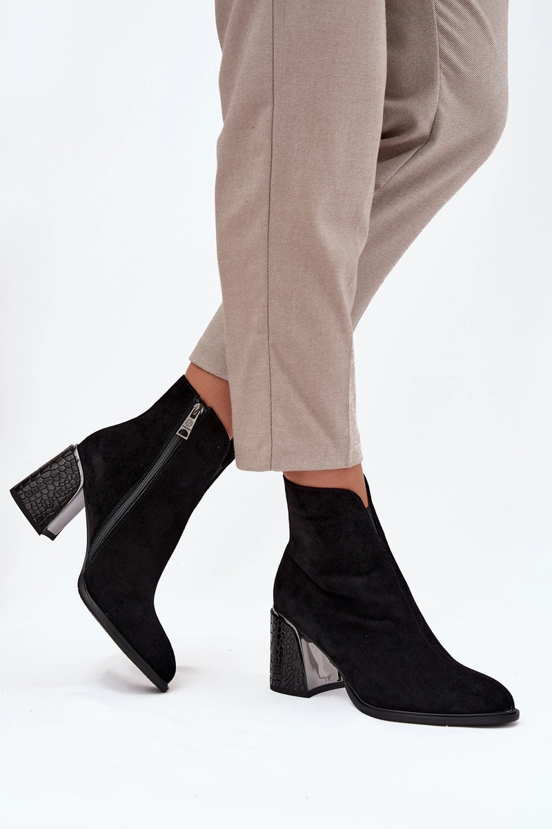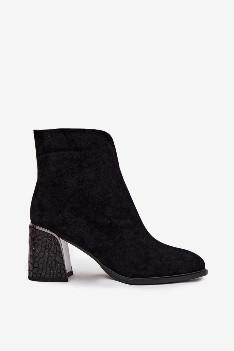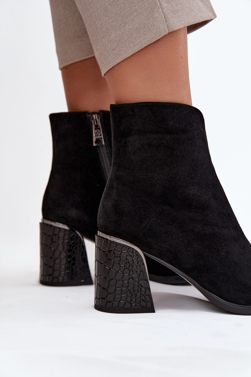 Zamszowe Botki Damskie Na Słupku Z Tłoczeniem Ocieplane Vinceza 66801 Czarne