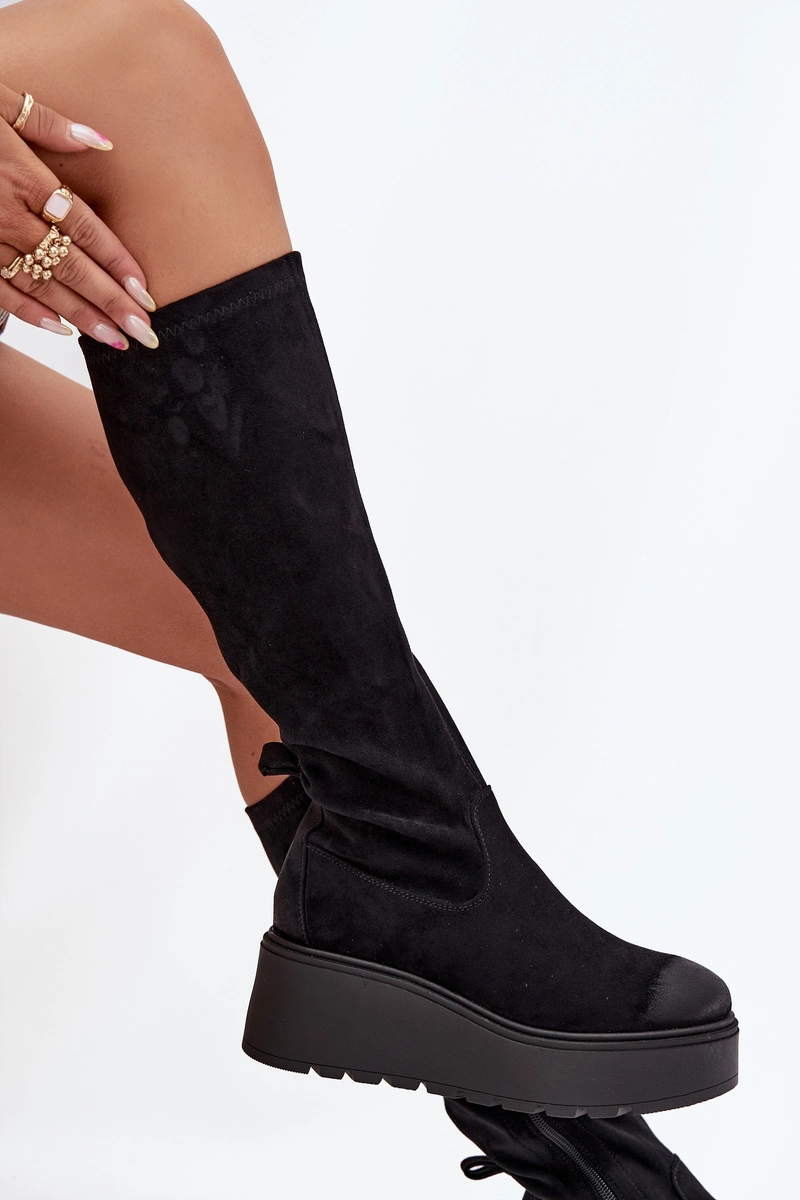 Kozaki Damskie Przed Kolano Na Platformie I Koturnie Vinceza 58342 Czarne
