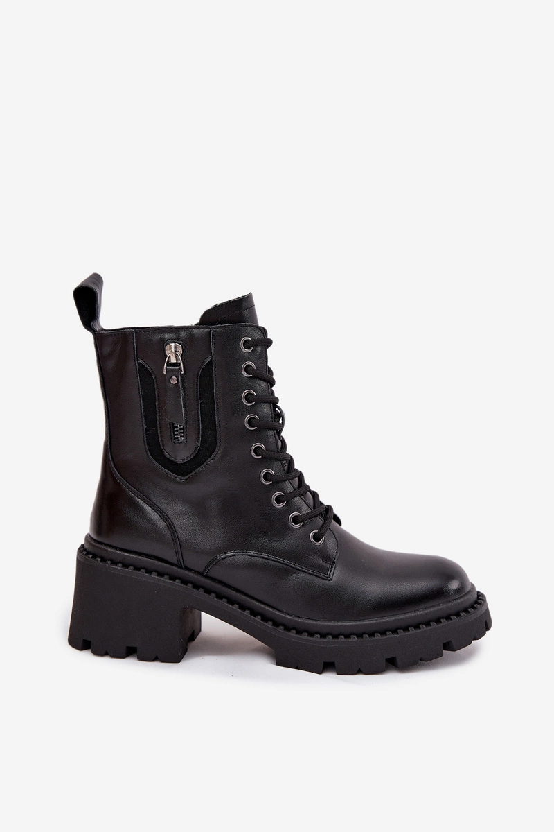 Skórzane Botki Damskie Na Klocku Ocieplane Vinceza 86418 Czarne