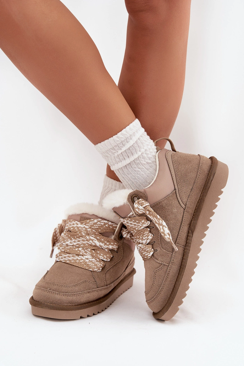 Zamszowe Śniegowce Damskie Z Futerkiem I Grubym Sznurowaniem Vinceza 97963 Beżowe