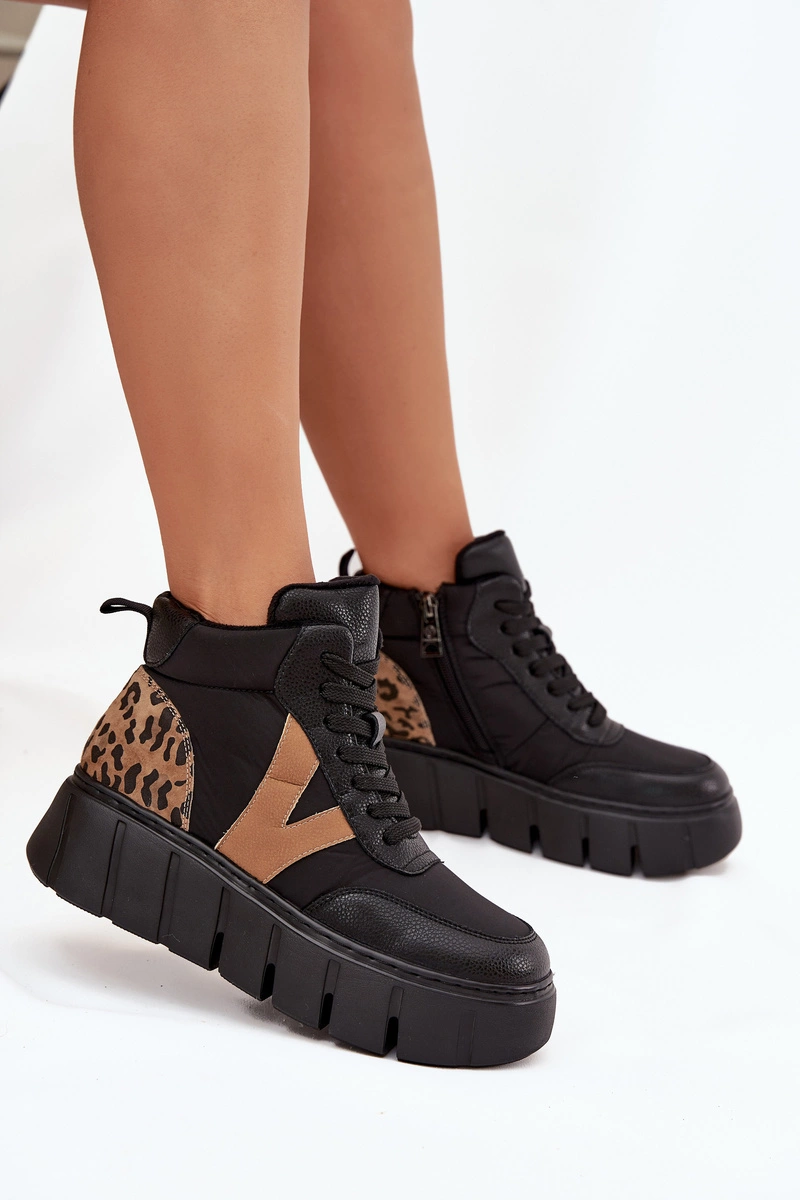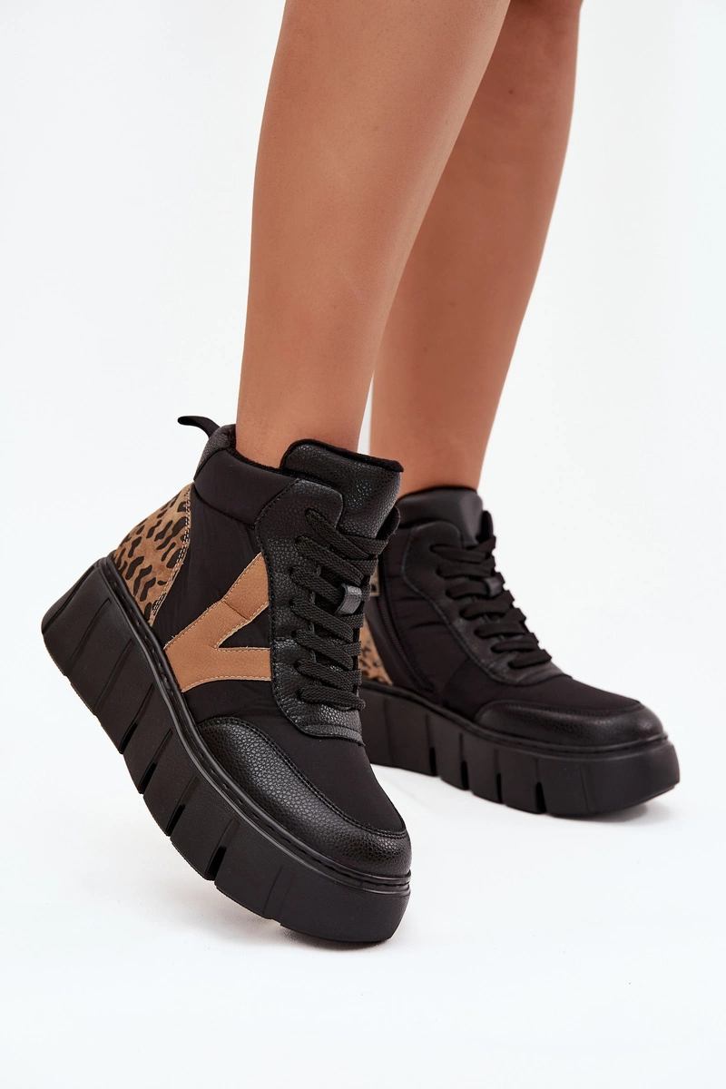 Skórzane Botki Damskie Na Platformie Ocieplane Vinceza 66838 Czarne