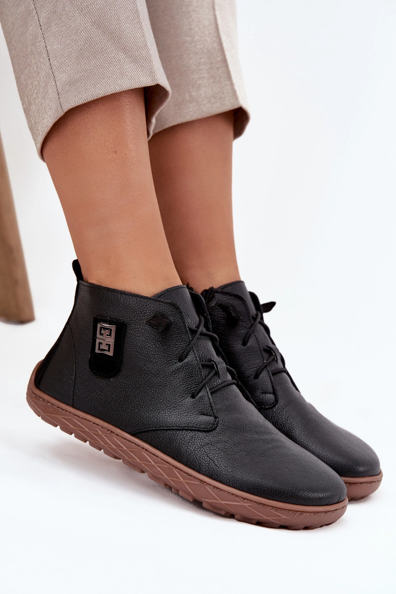 Skórzane Półbuty Barefoot Damskie Z Ozdobnym Detalem Zazoo 30072 Czarne