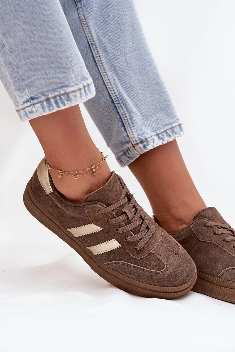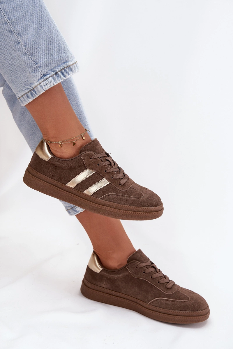 Sneakersy Damskie Zamszowe Na Platformie Brązowe Sylviona
