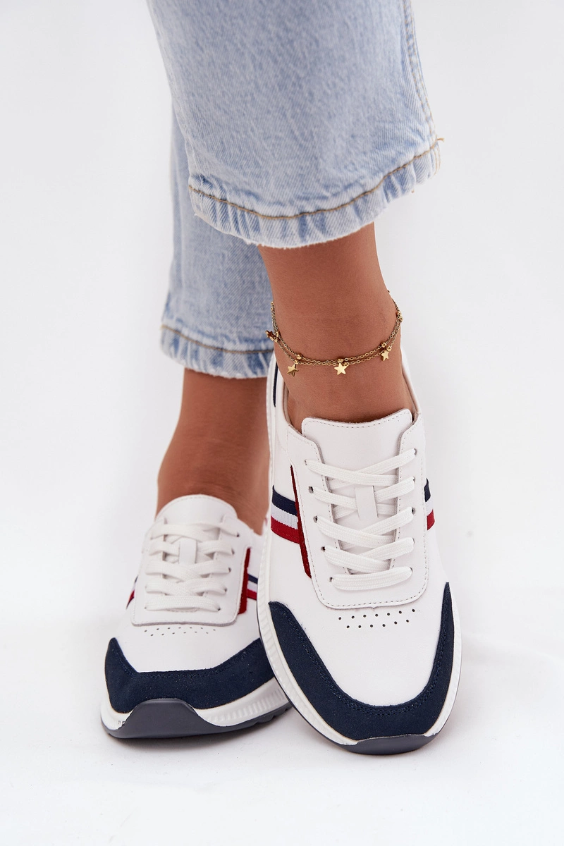 Buty Sportowe Skórzane Damskie Biało-Granatowe Lorvessa