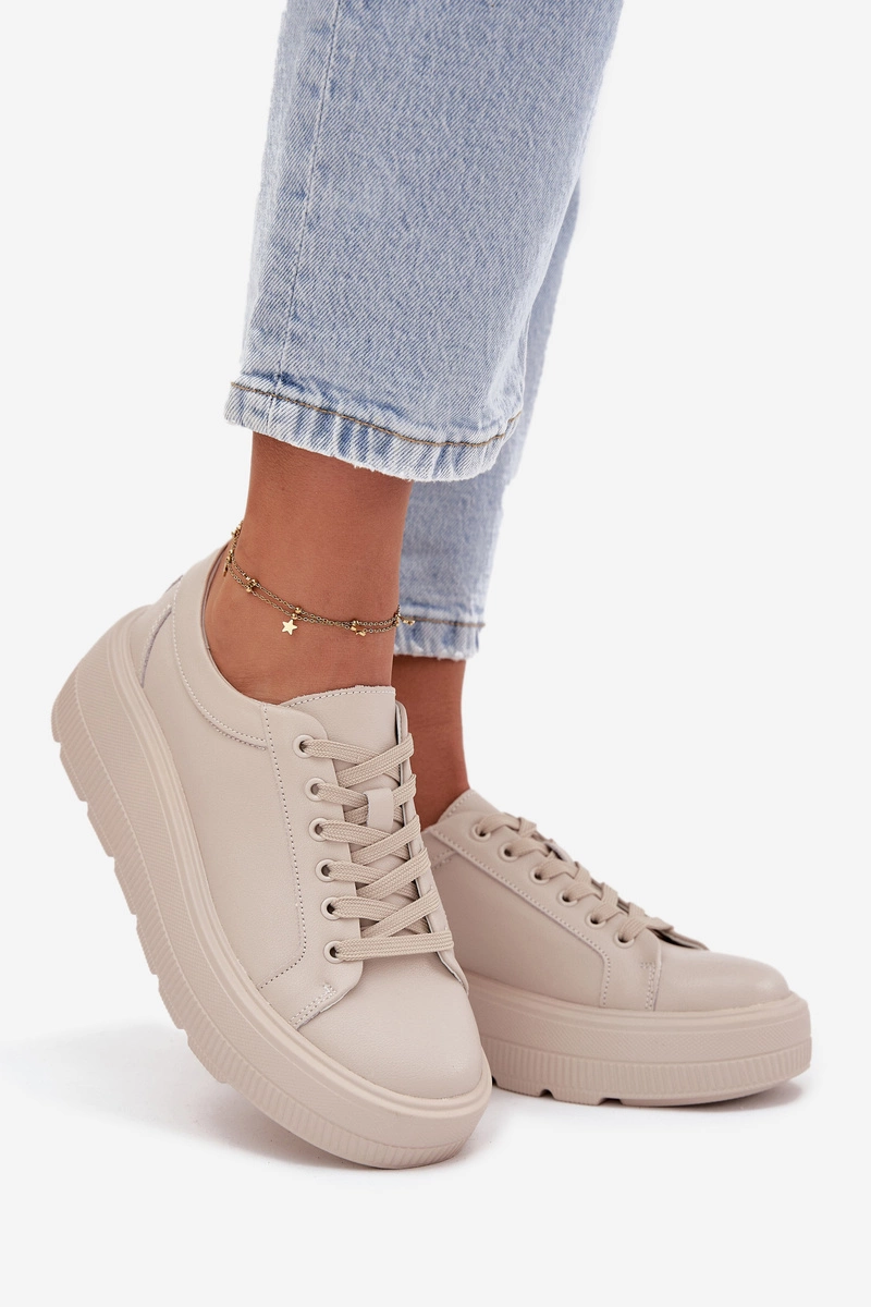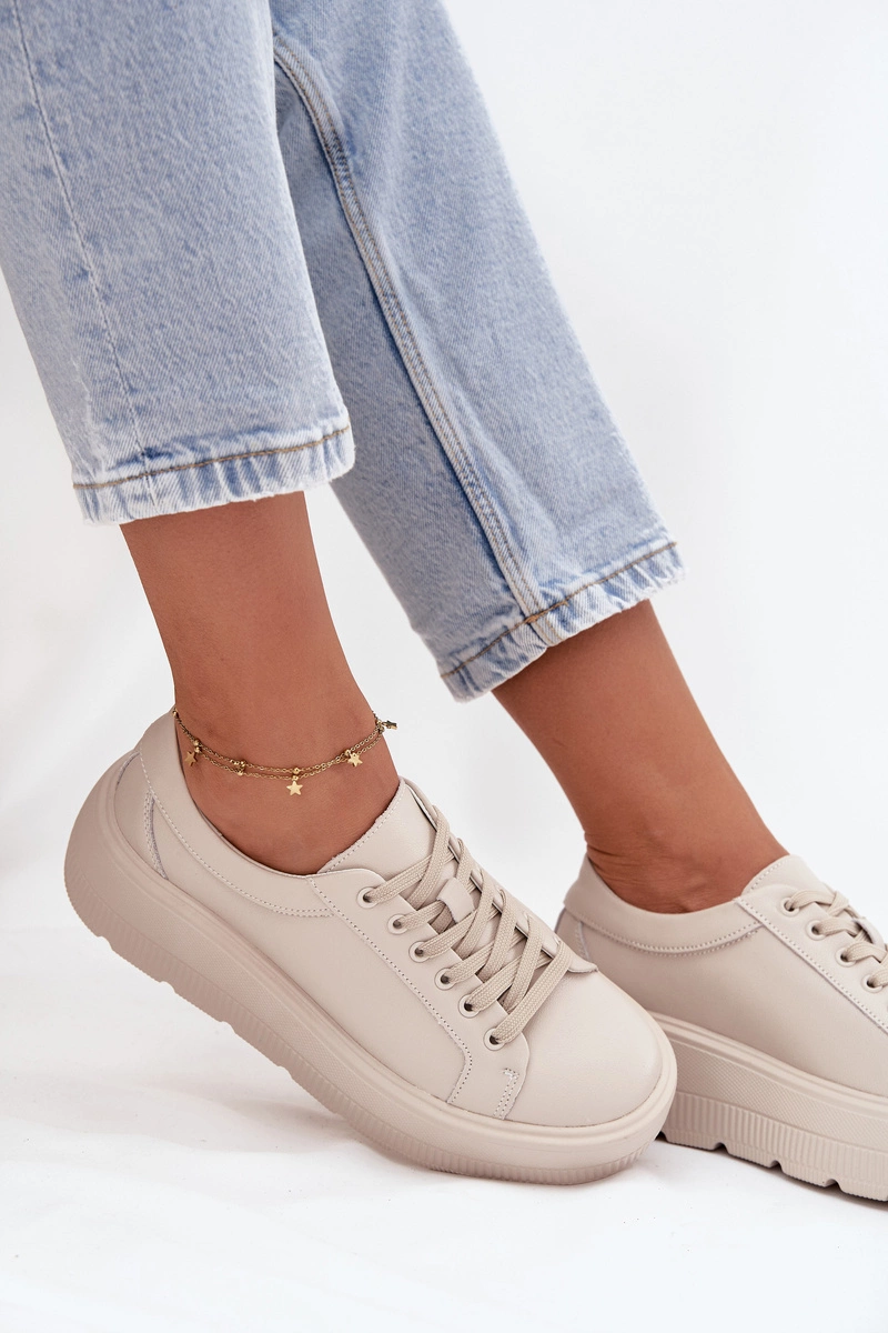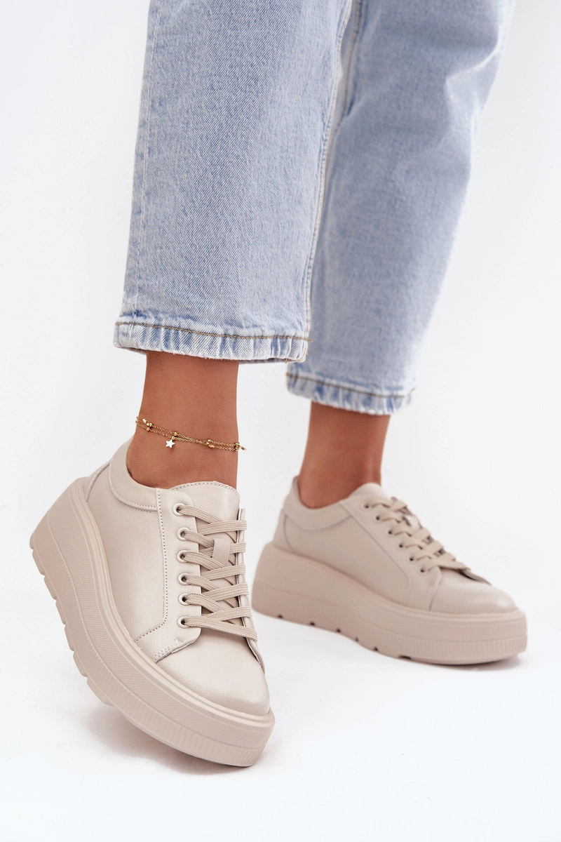 Skórzane Sneakersy Na Masywnej Platformie Beżowe Sylvessa