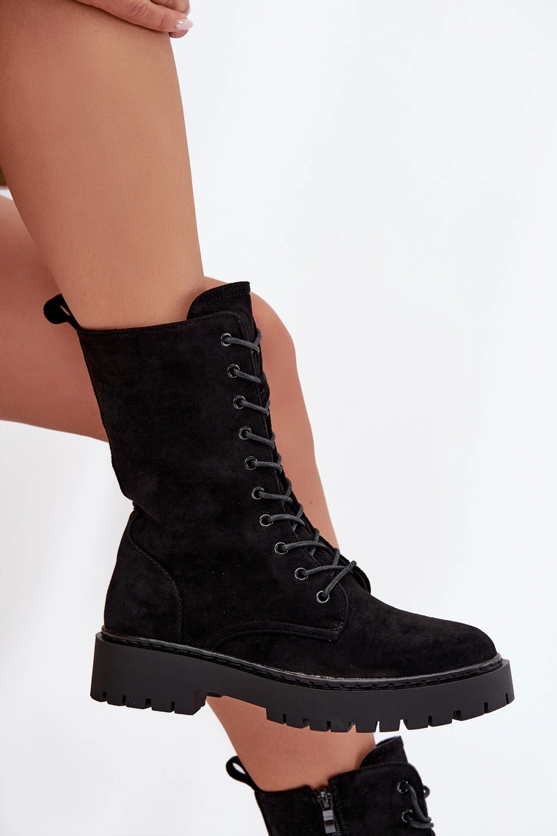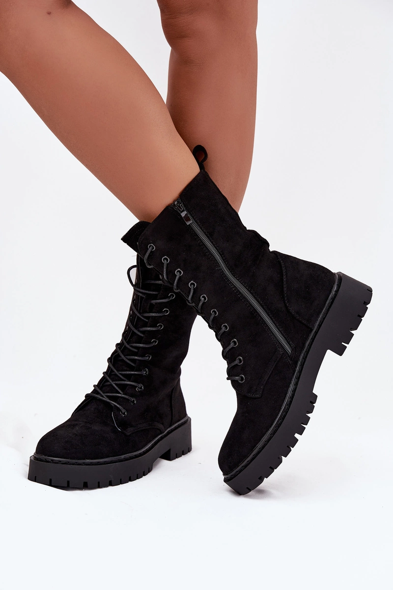 Klasyczne botki damskie typu workery wykonane z eko zamszu. Model osadzony na platformie z płaskim obcasem zapewnia stabilny krok, a ocieplenie gwarantuje komfort w chłodniejsze dni. Sznurowanie w połączeniu z zamkiem umożliwia łatwe zakładanie i idealne dopasowanie do stopy, co czyni je świetnym wyborem do codziennych, casualowych stylizacji. Przy wyborze rozmiaru prosimy sugerować się tabelą rozmiarów.