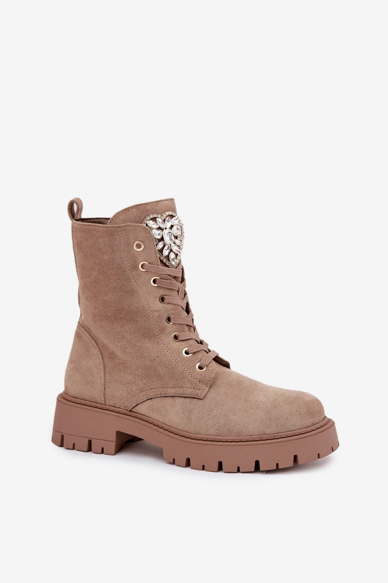 Botki Workery Damskie Z Kryształkami Na Języku Beżowe Rosira