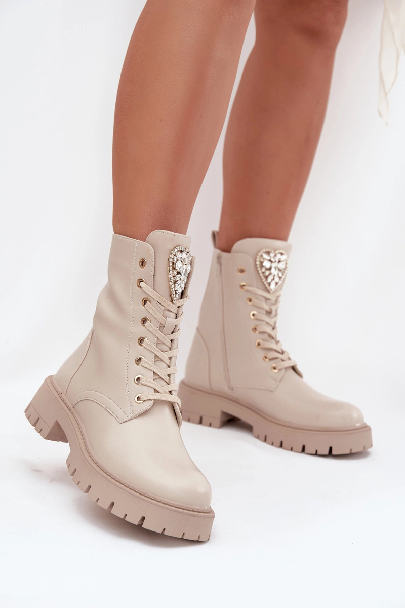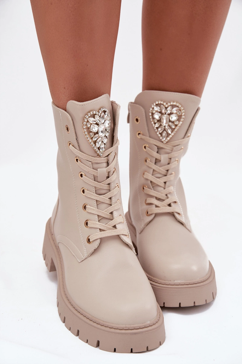 Botki Workery Damskie Z Kryształkami Na Języku Jasnobeżowe Rosira