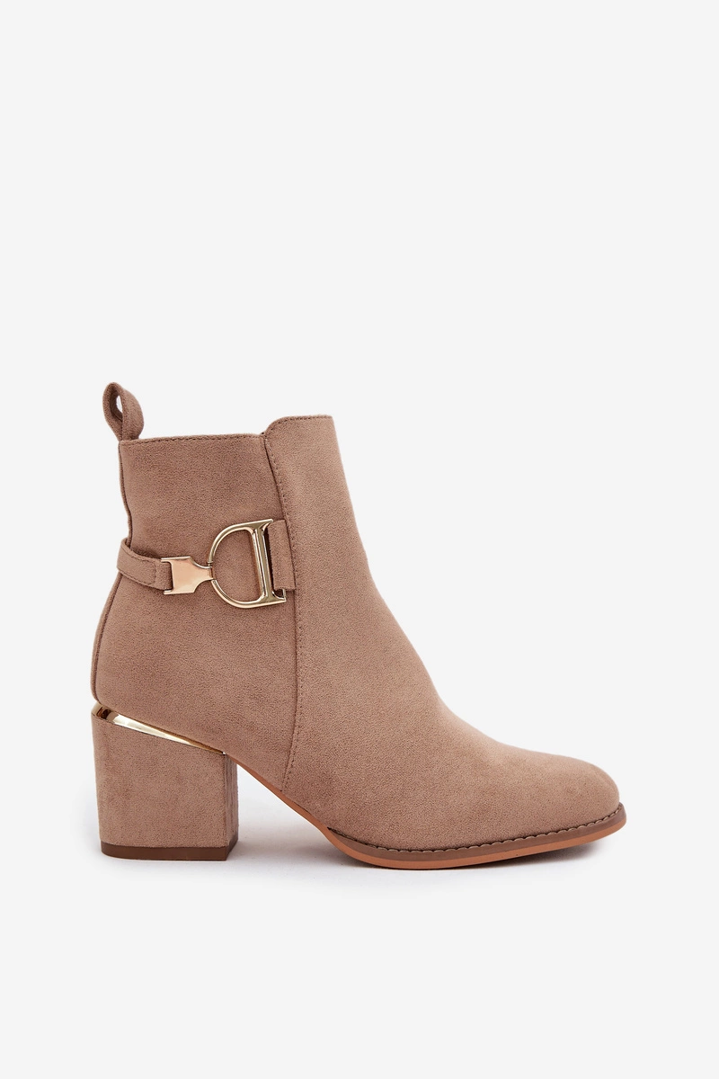 Ocieplane Botki Damskie Na Słupku Ze Złotymi Elementami Beżowe Ambrine