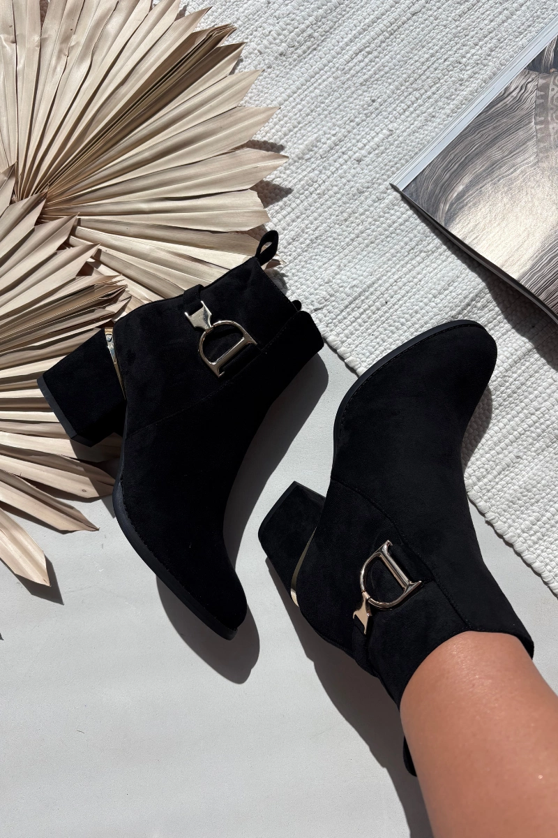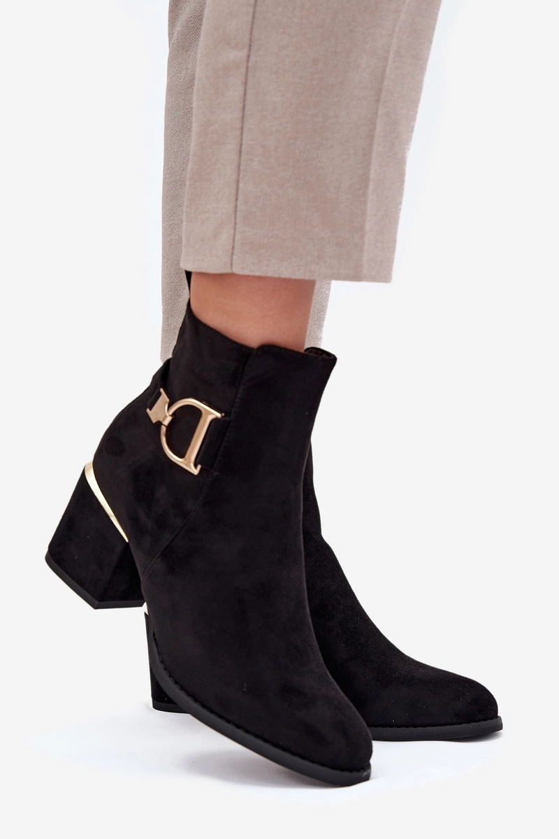 Ocieplane Botki Damskie Na Słupku Ze Złotymi Elementami Czarne Ambrine