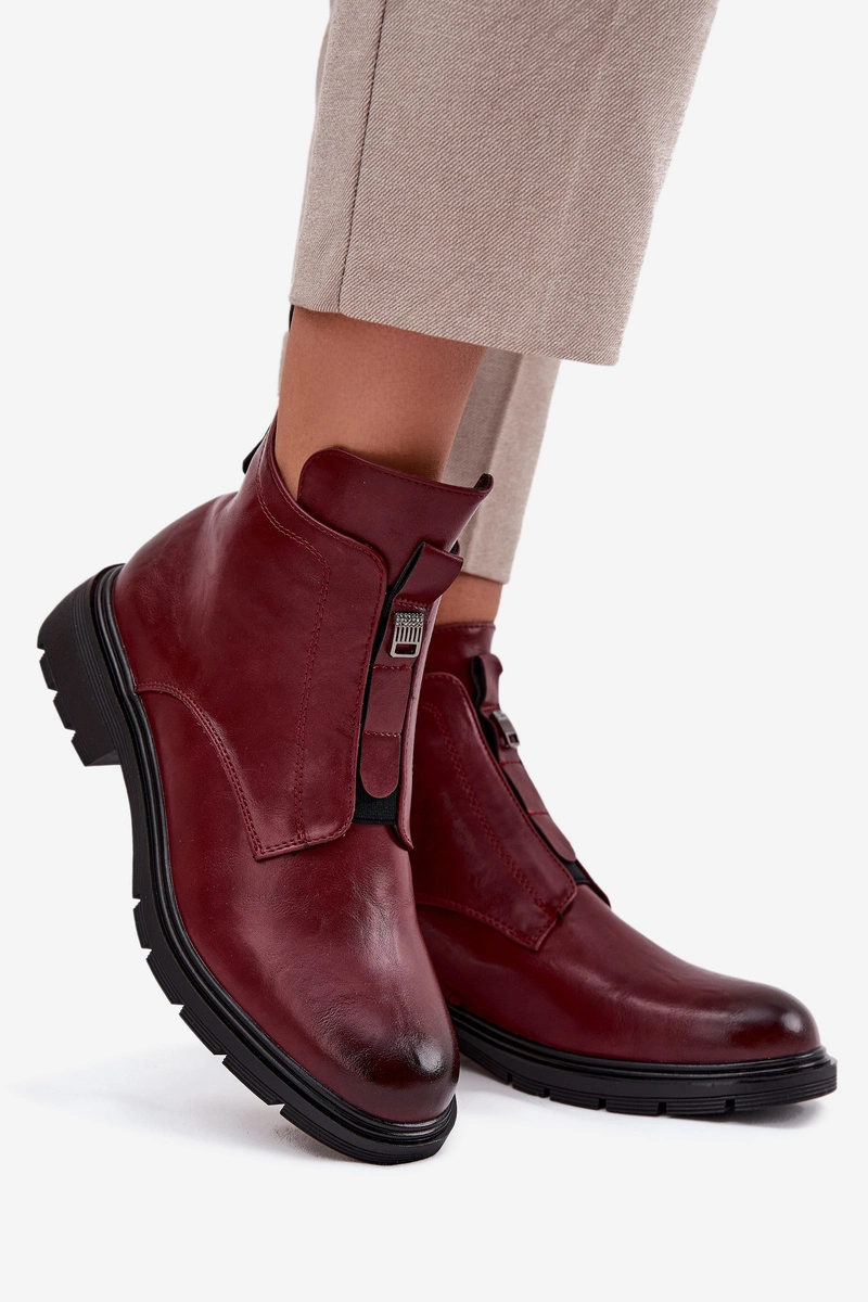 Ocieplane Botki Damskie Na Zamek Z Ozdobnym Detalem Bordowe Roselle