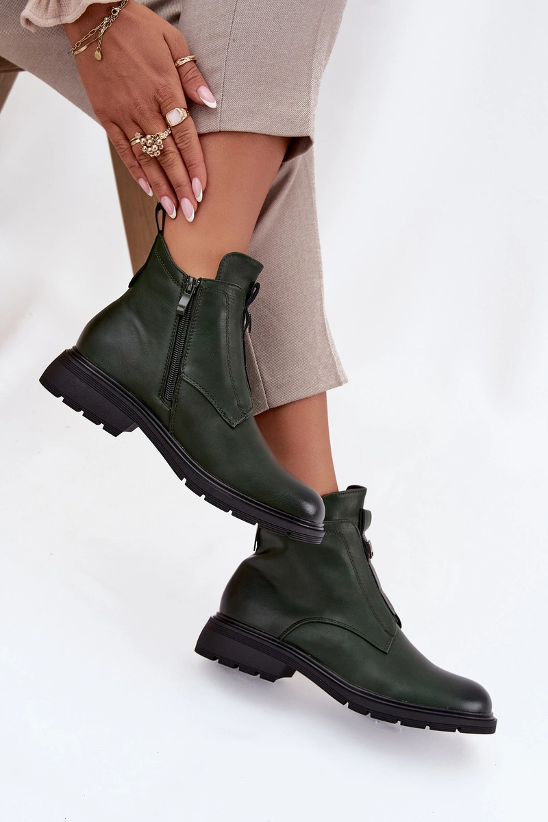Ocieplane Botki Damskie Na Zamek Z Ozdobnym Detalem Ciemnozielone Roselle