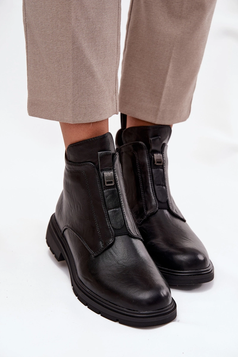 Ocieplane Botki Damskie Na Zamek Z Ozdobnym Detalem Czarne Roselle