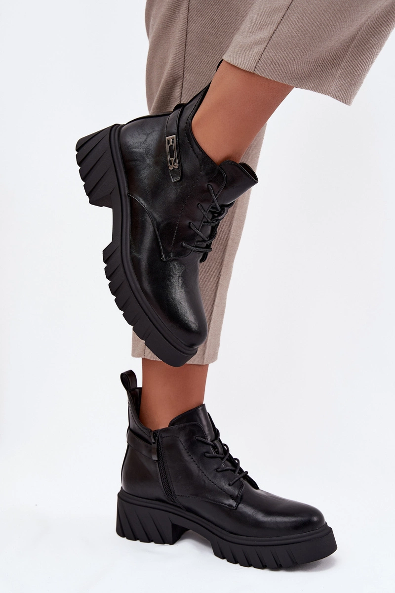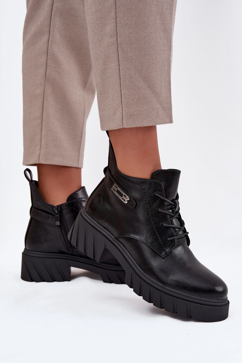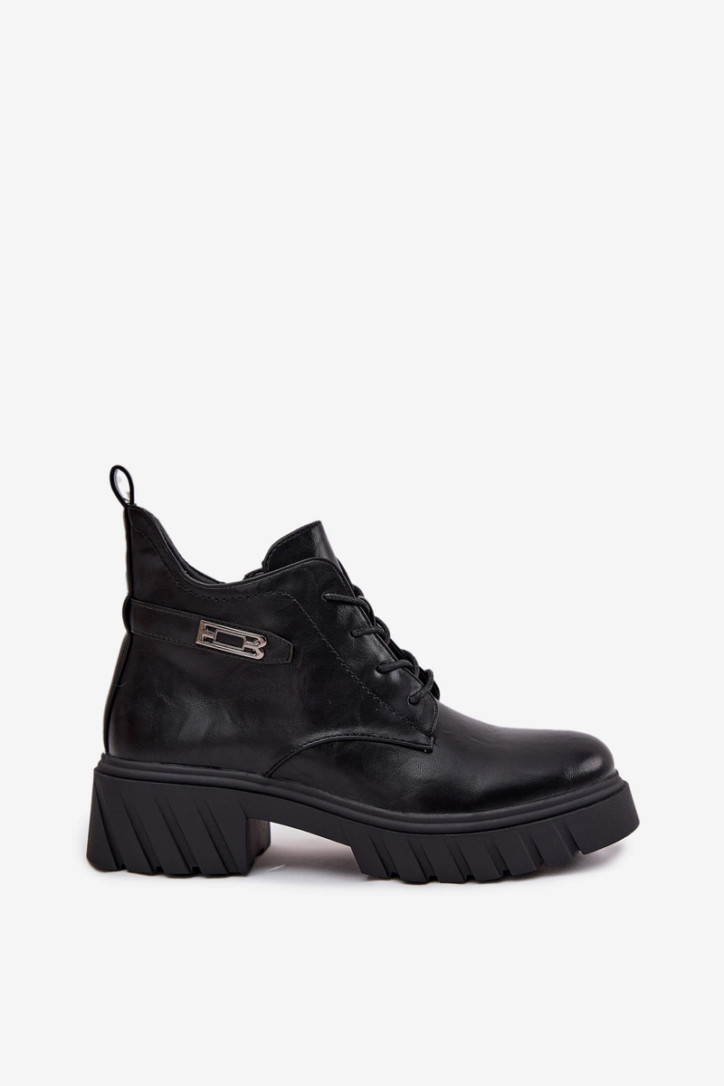 Niskie Ocieplane Botki Damskie Na Klocku Z Ozdobnym Paskiem Czarne Therisse