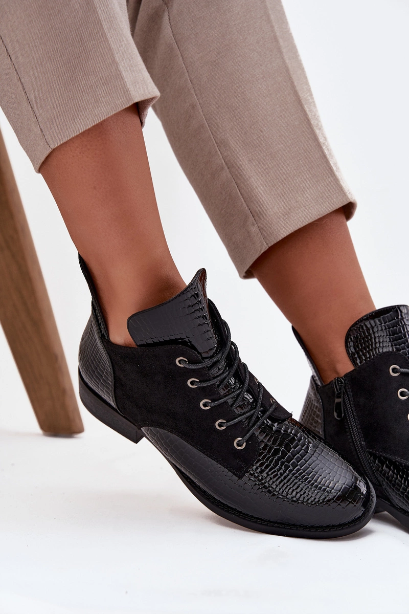Lakierowane Botki Damskie Z Ozdobnym Tłoczeniem Ocieplane Vinceza 16477 Czarne