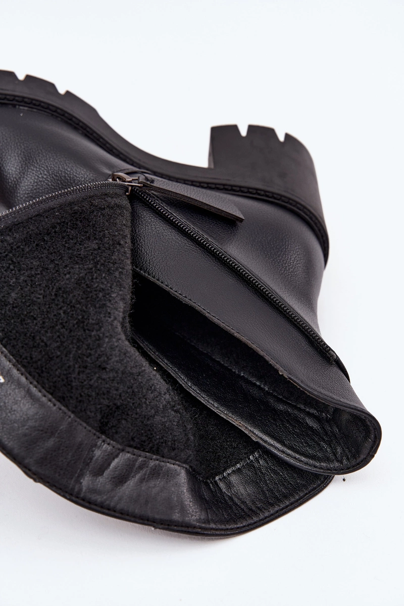 Ocieplane Botki Damskie Na Masywnym Obcasie Z Podwójnym Zamkiem Vinceza 58605 Czarne