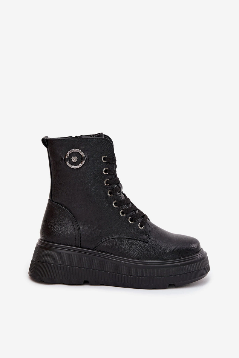 Botki Workery Damskie Ocieplane Na Platformie Z Ozdobnym Detalem Vinceza 16513 Czarne