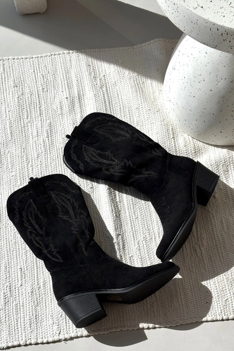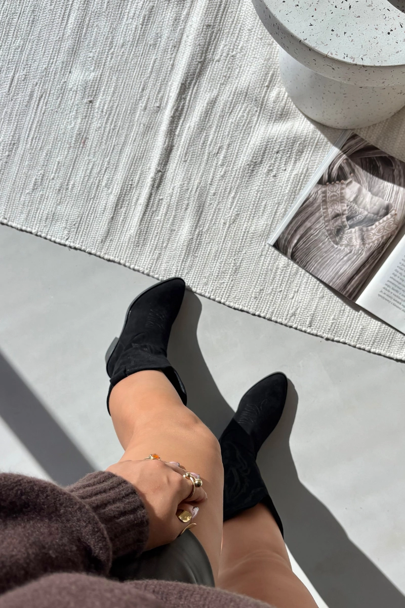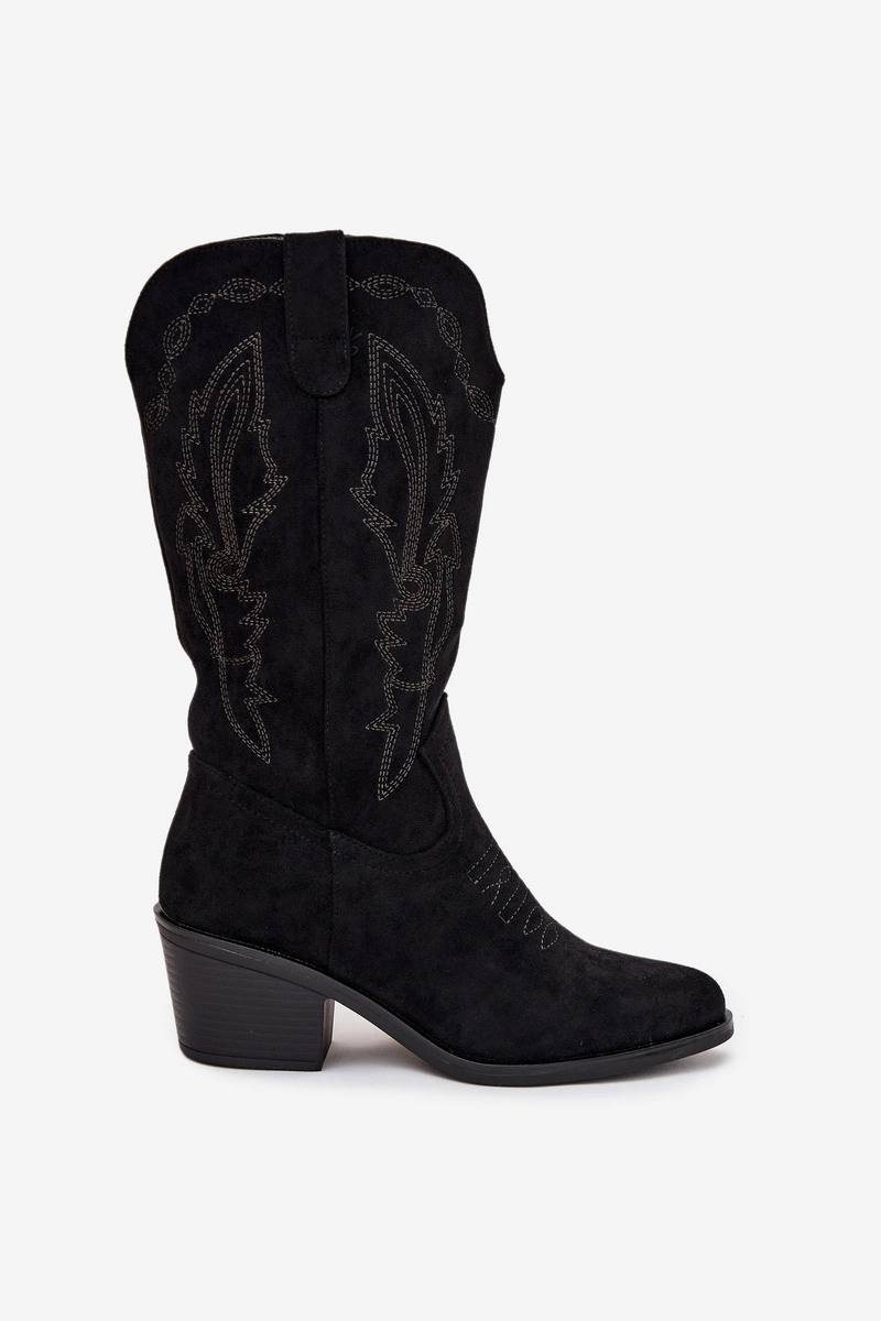 Kozaki kowbojki od marki Vinceza to połączenie klasycznego westernowego stylu z nowoczesnym, miejskim lookiem. Wykonane z eko zamszu, prezentują się lekko i stylowo, a charakterystyczne przeszycia podkreślają kowbojski charakter butów. Noski w kształcie migdała dodają im kobiecego akcentu, a stabilny obcas zapewnia wygodę i pewny krok. Model jest ocieplany, co gwarantuje komfort w chłodniejsze dni, a zamek po boku ułatwia szybkie zakładanie. Przy wyborze rozmiaru prosimy sugerować się tabelą rozmiarów.