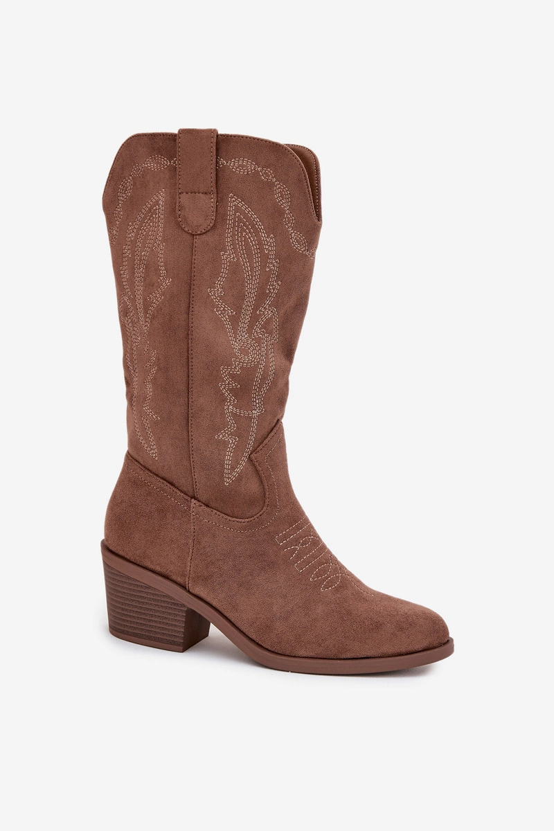 Kozaki kowbojki od marki Vinceza to połączenie klasycznego westernowego stylu z nowoczesnym, miejskim lookiem. Wykonane z eko zamszu, prezentują się lekko i stylowo, a charakterystyczne przeszycia podkreślają kowbojski charakter butów. Noski w kształcie migdała dodają im kobiecego akcentu, a stabilny obcas zapewnia wygodę i pewny krok. Model jest ocieplany, co gwarantuje komfort w chłodniejsze dni, a zamek po boku ułatwia szybkie zakładanie. Przy wyborze rozmiaru prosimy sugerować się tabelą rozmiarów.