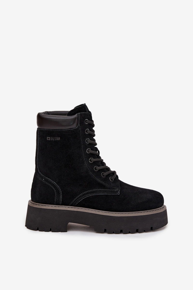 Zamszowe Botki Workery Damskie Sznurowane Big Star SS274791 Czarne