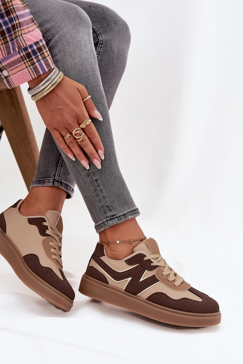 Sneakersy Damskie Niskie Eko Skórzane Brązowe Givelle
